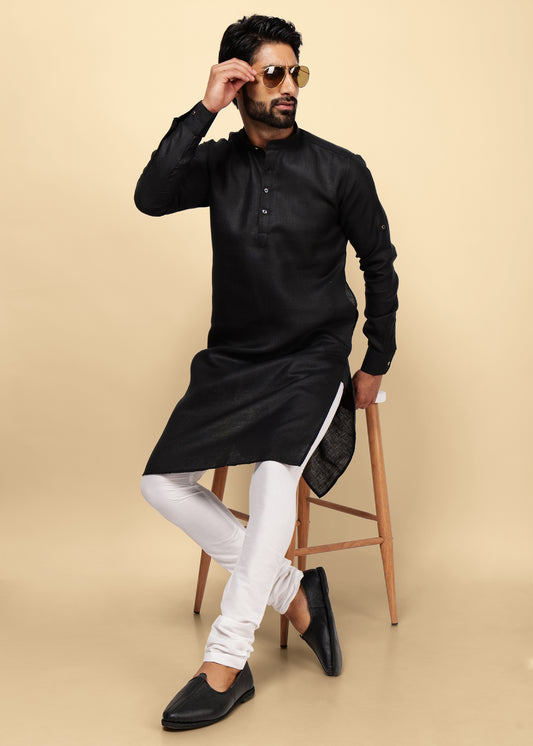 Dark Grey Linen Kurta